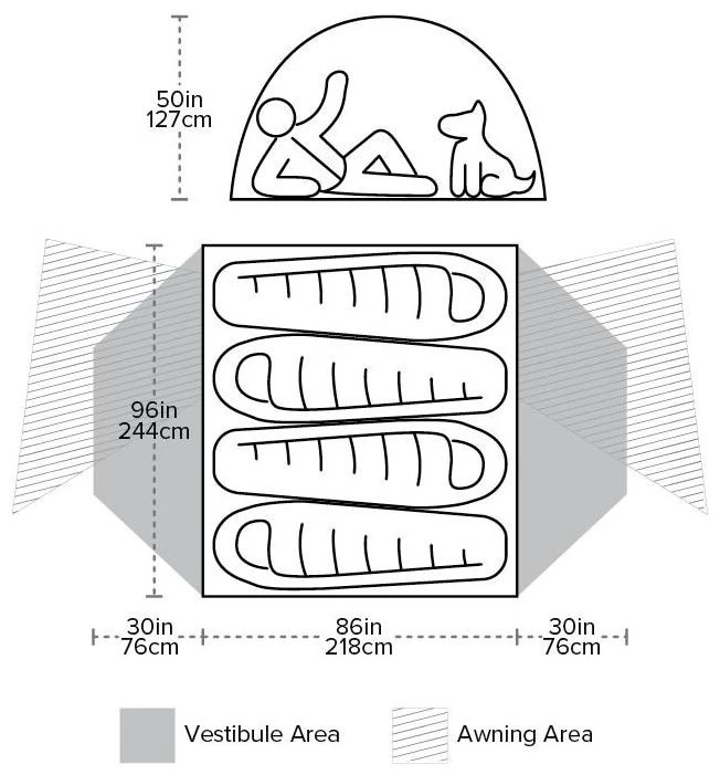 The high volume design provides ample living space in this freestanding structure. Traditional, media, and 3D bin pockets help to organize your gear without cramping your sleep space or capacity to sit up inside. Awning-style vestibules can be customized to expand living space, great for both drizzle and sun protection. Your ultimate UL home away from home.