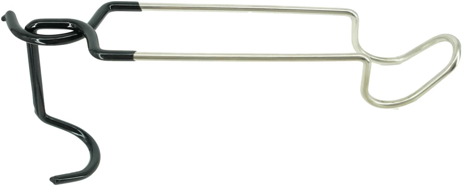 Deze praktische metalen ophanghaak is dé accessoire voor tijdens het kamperen. Door het inknijpen van deze handige haak opent het met kunststof beschermde