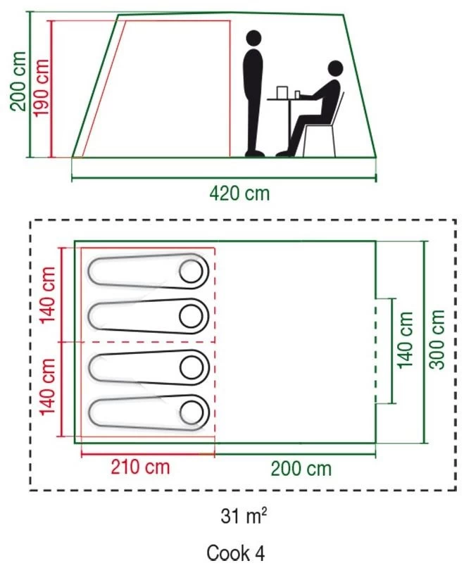 De Coleman Cook 4 is een comfortabele tunneltent voor 4 personen. De tent heeft een volledig geïntegreerd genaaid PE-grondzeil, waardoor droog en insectenvrij kamperen mogelijk is. De Cook 4 heeft grote zijruiten met afdekkingen om de zichtbaarheid te vergroten en licht in de tent te laten, maar biedt privacy wanneer dat nodig is. De tent is snel op te zetten omdat de korte tunnels de doorvoer van de tentstokken vereenvoudigen.
