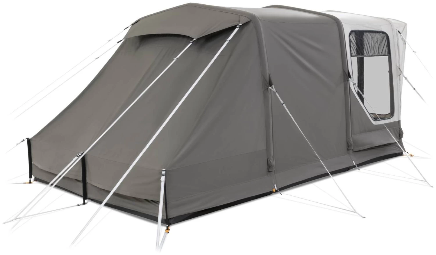 De Dometic Boracay FTC 301 TC is een zeer compacte opblaasbare tent met stahoogte. Dometic noemt de Boracay FTC 301 TC 3 persoons, maar een royale 2 persoons is wellicht een betere kwalificatie. Door zijn luchtbuizen zet je de Dometic Boracay FTC 301 TC zeer snel op. Het afbreken van de tent gaat helemaal snel omdat je alleen de ventielen van de Boracay FTC 301 TC hoeft open te draaien om de lucht weer uit de buizen te laten.