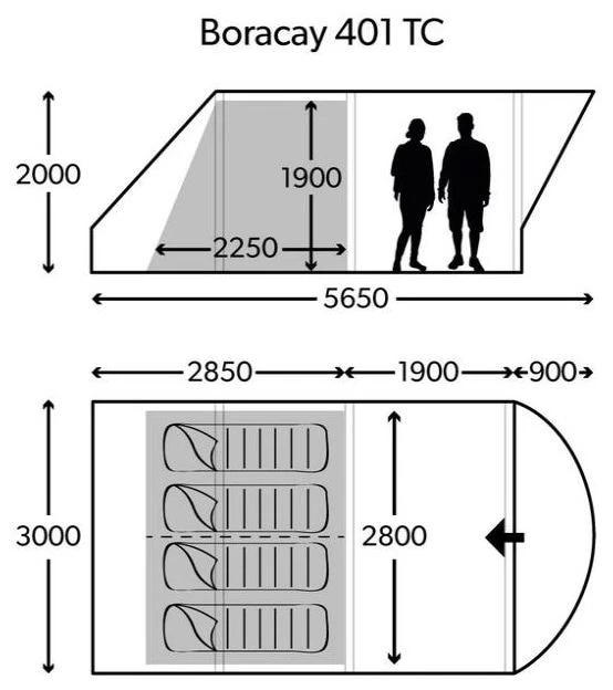 De Dometic FTC Boracay 401 TC is een zeer compacte opblaasbare tent met stahoogte. Dometic noemt de FTC Boracay 401 TC 3 persoons, maar een royale 2 persoons is wellicht een betere kwalificatie. Door zijn luchtbuizen zet je de Dometic FTC Boracay 401 TC zeer snel op. Het afbreken van de tent gaat helemaal snel omdat je alleen de ventielen van de FTC Boracay 401 TC hoeft open te draaien om de lucht weer uit de buizen te laten.