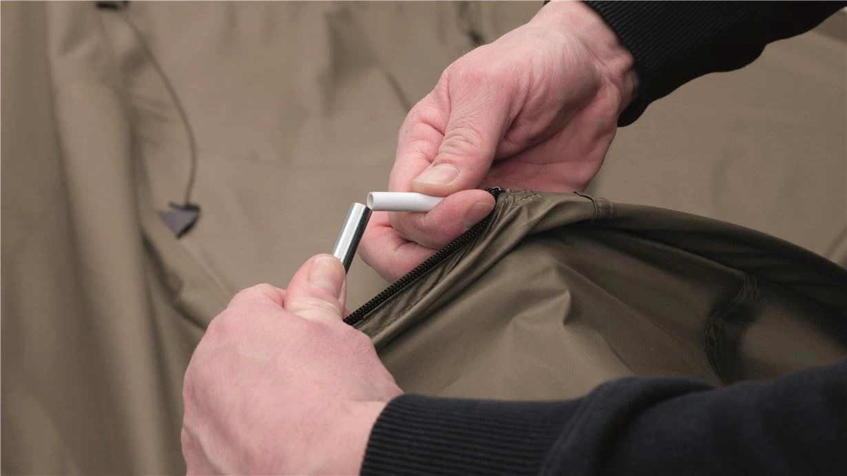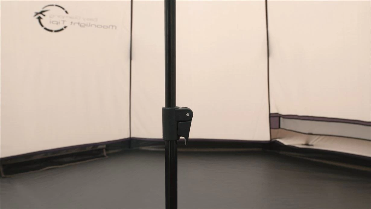 De Easy Glamping Moonlight Tipi biedt slaapplaatsen voor acht glampers in een klassiek, snel op te zetten ontwerp met een centrale stalen stok. De tipi biedt de grootte en vrijheid voor gezinnen en vrienden om intieme ruimtes te creëren, zich te verbinden met de natuur en plezier te hebben in de buitenlucht. Gemakkelijke toegang wordt gegarandeerd door de opvouwbare platte ingang met dubbele schuifritsen op de deur voor flexibele opening en een volledige gaasdeur erachter.Een ventilatieopening van gaas onder de kap op de top, met een plastic ring om zijn vorm te behouden en lage overdekte ventilatieopeningen zorgen voor voldoende ventilatie en gemakkelijk verstelbare frisse luchtstroom.