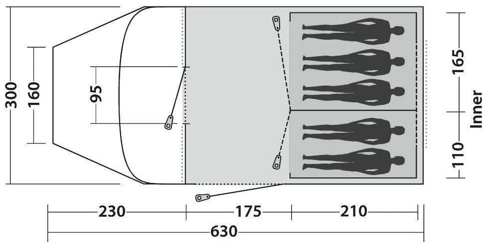 De Palmdale 500 Lux biedt flexibel plaats aan vijf personen in drie zones en is ideaal voor gezinnen die van een actieve vakantie houden. Dankzij de kleurgecodeerde glasvezelstokken en stoksleuven kunt u hem snel en gemakkelijk opzetten. Als u aan de voorkant binnenkomt, kunt u in een volledig overdekte natte zone uw vochtige spullen achterlaten voordat u de ruime hoofdruimte binnengaat. Die heeft een ingenaaid grondzeil om tocht buiten te houden, plus een zijdeur en een groot raam met gordijn. Aan de achterzijde zijn twee Sleep Tight-slaapkamers.