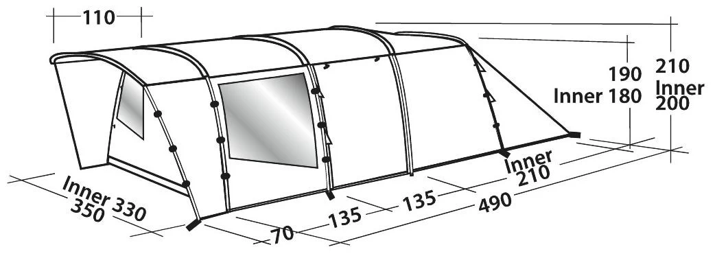 De Palmdale 600 biedt flexibel plaats aan zes personen en heeft een voordeur en een zijdeur voor flexibele toegang, en is daarmee perfect voor gezinnen met kinderen. Dankzij de kleurgecodeerde glasvezelstokken en stoksleuven kunt u hem snel en gemakkelijk opzetten. Een ingenaaid grondzeil houdt tocht buiten, terwijl de ramen met gordijn in het grote woongedeelte het licht naar binnen laten stromen. De diepe luifel boven de voordeur, met insectengaas en ramen, biedt extra beschutting voor toegang, koken en het stallen van fietsen.