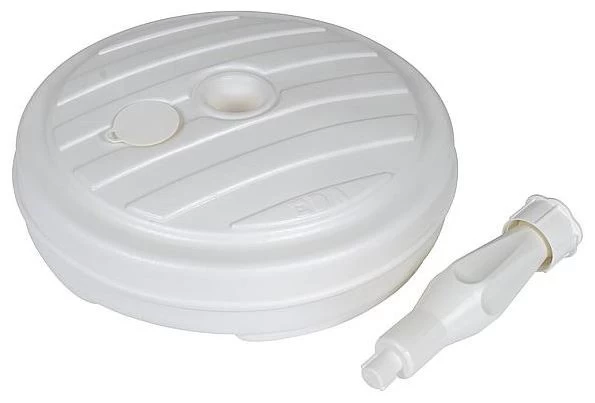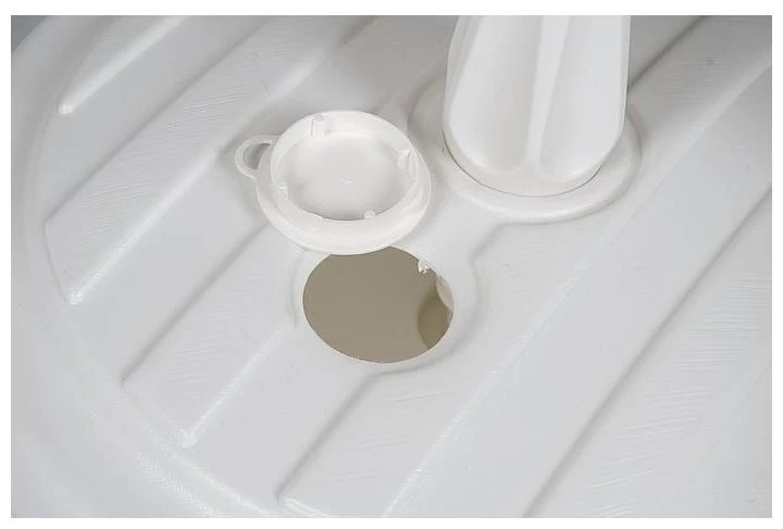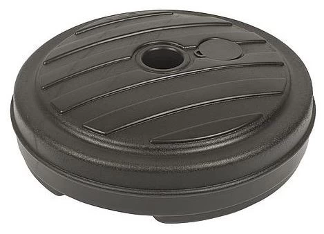 Een stevige parasolvoet. Voorkomt het omwaaien van de parasol door de parasolvoet te vullen met water of zand. Deze ronde parasolvoet is geschikt voor een parasol steel van 18 tot 32 millimeter.