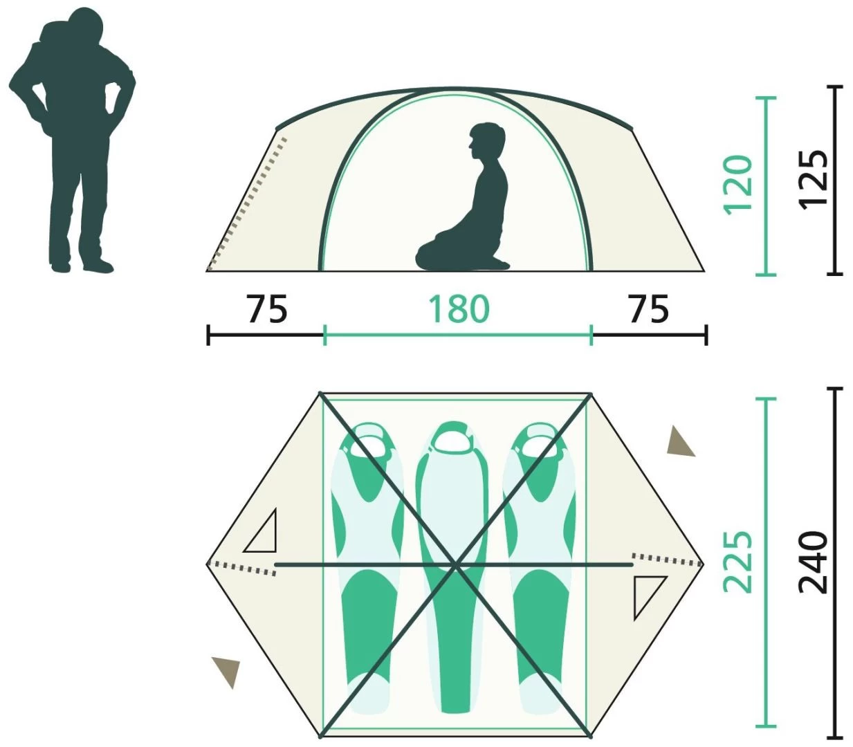 | Binnentent | 100% ademend polyester 68d |