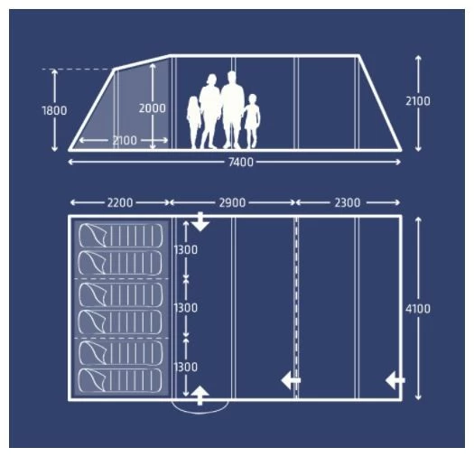 Ruimte voor het hele gezin. De royale leefruimte van de Croyde 6 AIR TC heeft ramen over de gehele hoogte, gaaspanelen aan de voor- en zijkant en een grote binnentent achterin, die kan worden verdeeld in drie slaapkamers. Een geïntegreerde overdekte zij-ingang biedt beschutte toegang tot de tent. Het duurzame Weathershield™ TC-materiaal vermindert condensatie en regelt de temperatuur om te zorgen dat je je comfortabel voelt in warme klimaten.