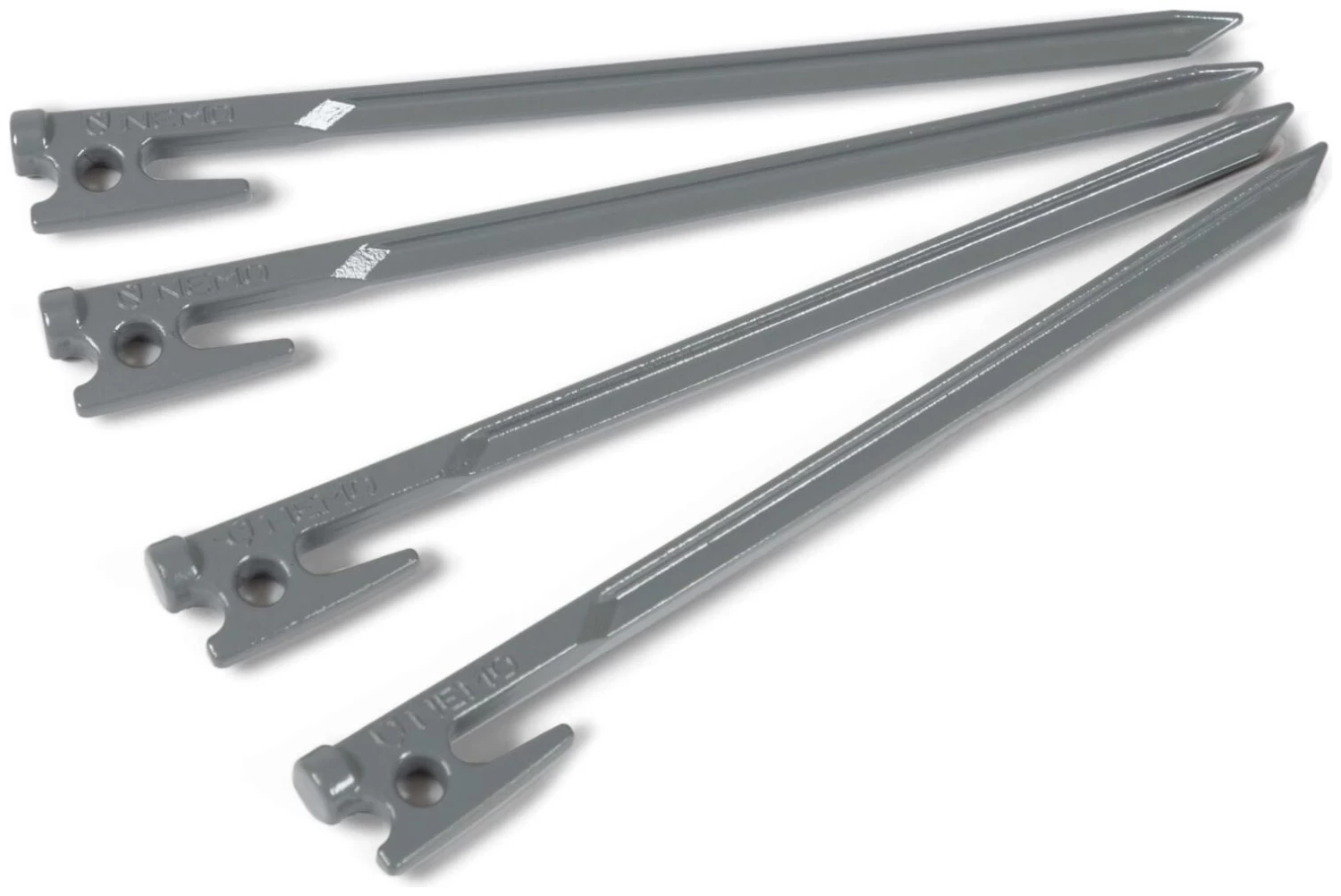Javelin™ is a bombproof forged steel stake with a cleat locking system that streamlines cord tensioning. The wide head for striking makes it easy to drive it into the ground, and the T-shape construction is strong enough to withstand errant blows and tough rocks.