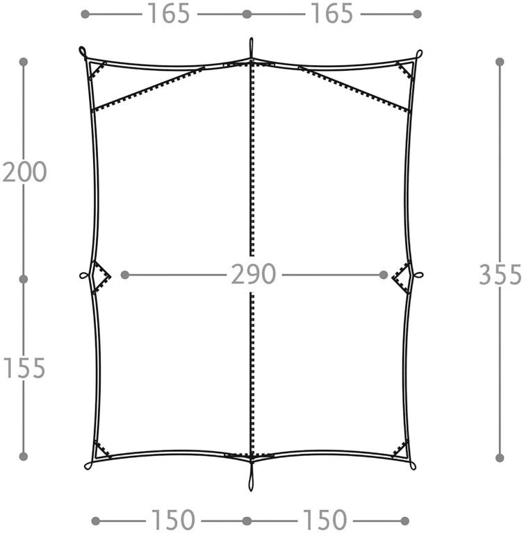 Handzame lichtgewicht tarp van 290x355cm, ontworpen voor de lichtgewicht kampeerder puur sang. GorLyn 30 biedt sterkte en duurzaamheid. De trapeze vorm zorgt voor voldoende spanpunten waarmee de tarp als stabiele shelter kan worden neergezet. De Q-ring bevestigingspunten maken het gemakkelijk om hem op te zetten, af te spannen en kunnen spanlijnen snel worden aangebracht en verwisseld. De vele afspanpunten zijn allemaal voorzien van Gornyma versteviging.