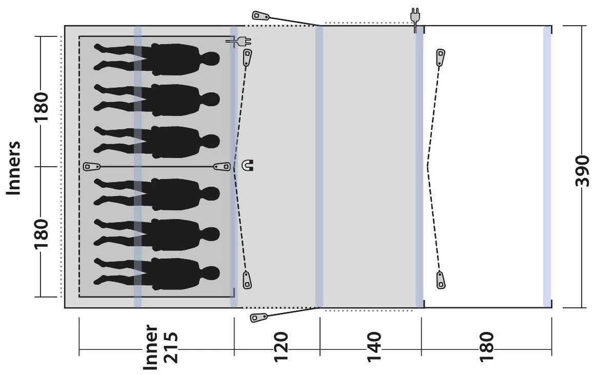 Pouvant accueillir jusqu’à six personnes dans deux chambres Premier avec vue Panorama, la Birchdale 6PA offre beaucoup d’espace polyvalent pour une famille de campeurs. Sous l’auvent de 180 cm de profondeur, sa porte d’entrée verticale assure un accès facile et davantage d’espace intérieur. La circulation d’air frais est assurée par des portes latérales jumelles en maille et des panneaux de ventilation bas. Ce modèle est doté de haubans anti-tempête pour plus de stabilité.