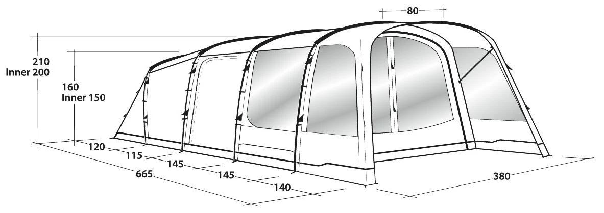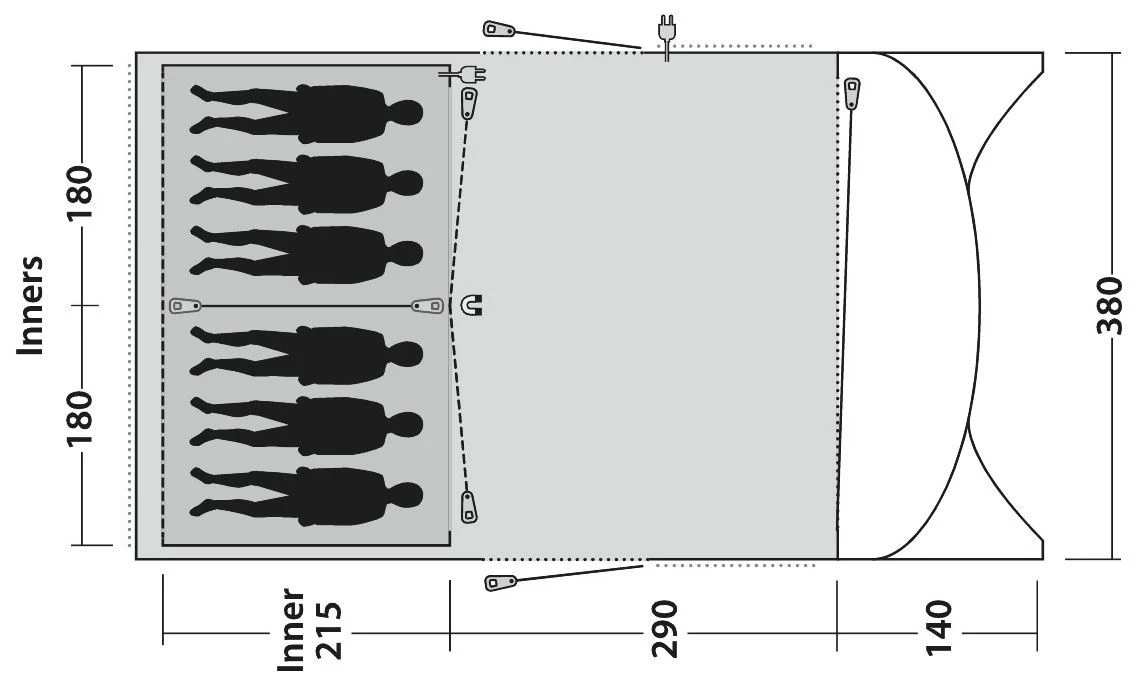 Met zes personen slapen in twee Premier-slaapgedeeltes met donkere binnententen en Outwell Quick & Quiet-binnendeuren beschikt Greenwood 6 over een diepe luifel met groot getint zijraam, perfect om te ontspannen tijdens zonnige dagen. Dit luchtige ontwerp biedt veelzijdige ruimte en praktisch comfort met een steile voor- en zijkant om de binnenruimte te maximaliseren, getinte ramen, Outwell HookTrack-systeem, Rear Ventilation System, een D-deur en een zijdeur met gaas.