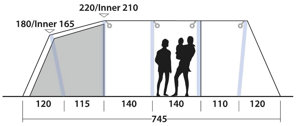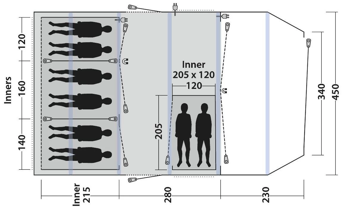 U zult genieten van de enorme ruimte voor een flexibel kampeerleven in de king-size Queensdale 8PA opblaasbare tent boordevol mogelijkheden. Ruimte voor acht slaapplaatsen in maximaal vier slaapkamers, dus perfect om te delen met familie en vrienden op lange kampeervakanties. Een binnentent in het woongedeelte biedt de mogelijkheid voor een logeerkamer of kan worden gebruikt als handige opslagruimte. Als de binnentent niet nodig is, kan deze gemakkelijk worden verwijderd voor extra leefruimte. U kunt de vele deuren wegrollen om frisse lucht en natuur het interieur te laten vullen voor een echte buitenervaring. Met uitstekende veelzijdige ruimte en ventilatie kunt u vele jaren samen genieten van het delen van een fijn vakantieverblijf.
