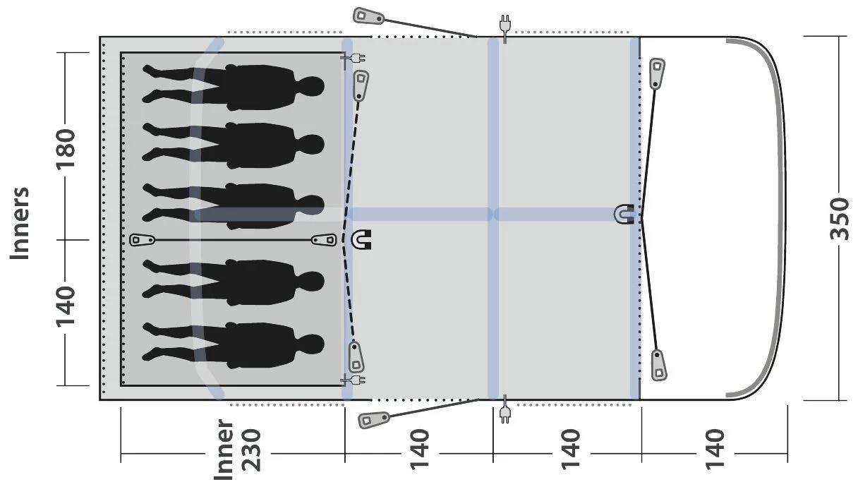 De Outwell Springville 5SA-luchttent heeft een fris Scandinavisch ontwerp en zal u zeker opvallen door zijn slanke profiel, strakke lijnen en innovatieve Outtex 6000 RS Endurance stof met een superieure scheurvastheid. De tent is ideaal voor lange, actieve vakanties op elk gewenst moment, en de diepe luifel biedt schaduw en bescherming tegen de elementen. Met voldoende stahoogte geniet u van het ruime gevoel van een volledig uitgeruste tent die u het comfort van thuis biedt. Er is ruimte voor vijf personen, ideaal voor gezinnen of vrienden die een tent delen, en door het uitstekende ontwerp maakt u contact met de natuur en kunt u samen ontspannen in stijl. Door de voordeur weg te rollen creëert u een panorama-ervaring waarmee u buiten naar binnen brengt.