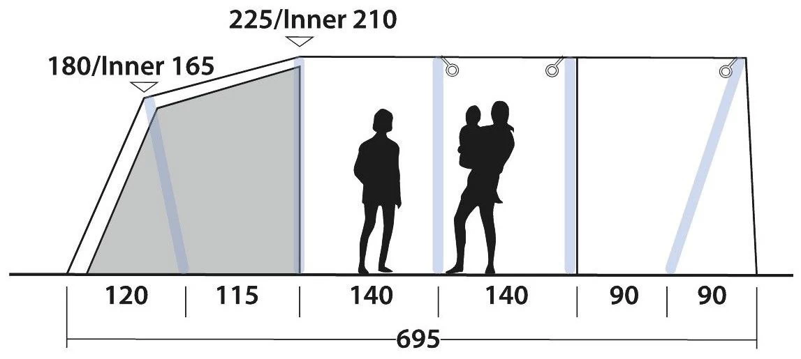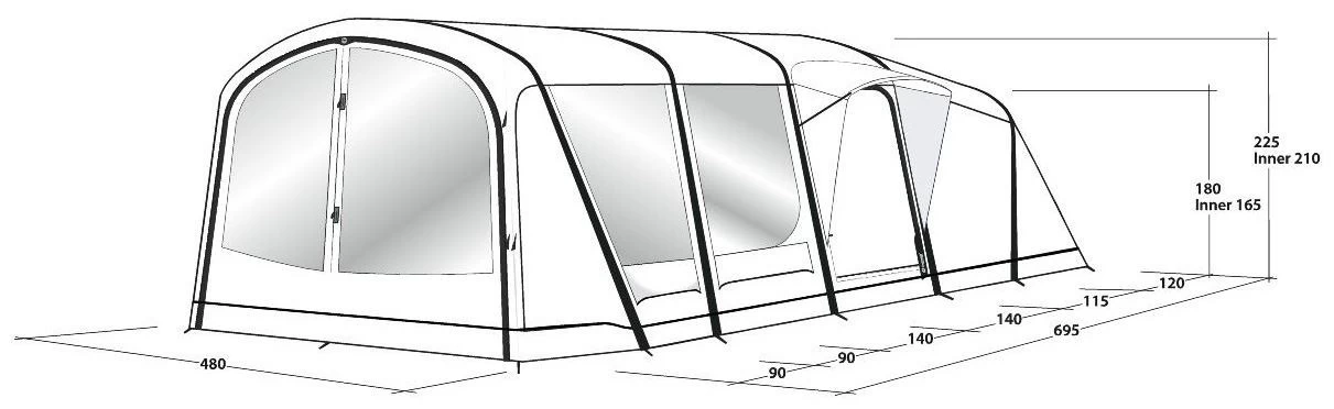 Het ontwerp met 3 zones van de Sundale 7PA biedt zeven slaapplaatsen in drie Premier-slaapgedeeltes met panoramisch uitzicht en een grote woonruimte voor grote gezinnen. Quick & Quiet-toegang tussen de buitenste en binnenste zones en een luifel met regenwering boven de zijdeur zorgen voor gemakkelijke, flexibele toegang. Het Rear Ventilation System biedt opties van volledig open tot zorgvuldig afgesloten door een rits.