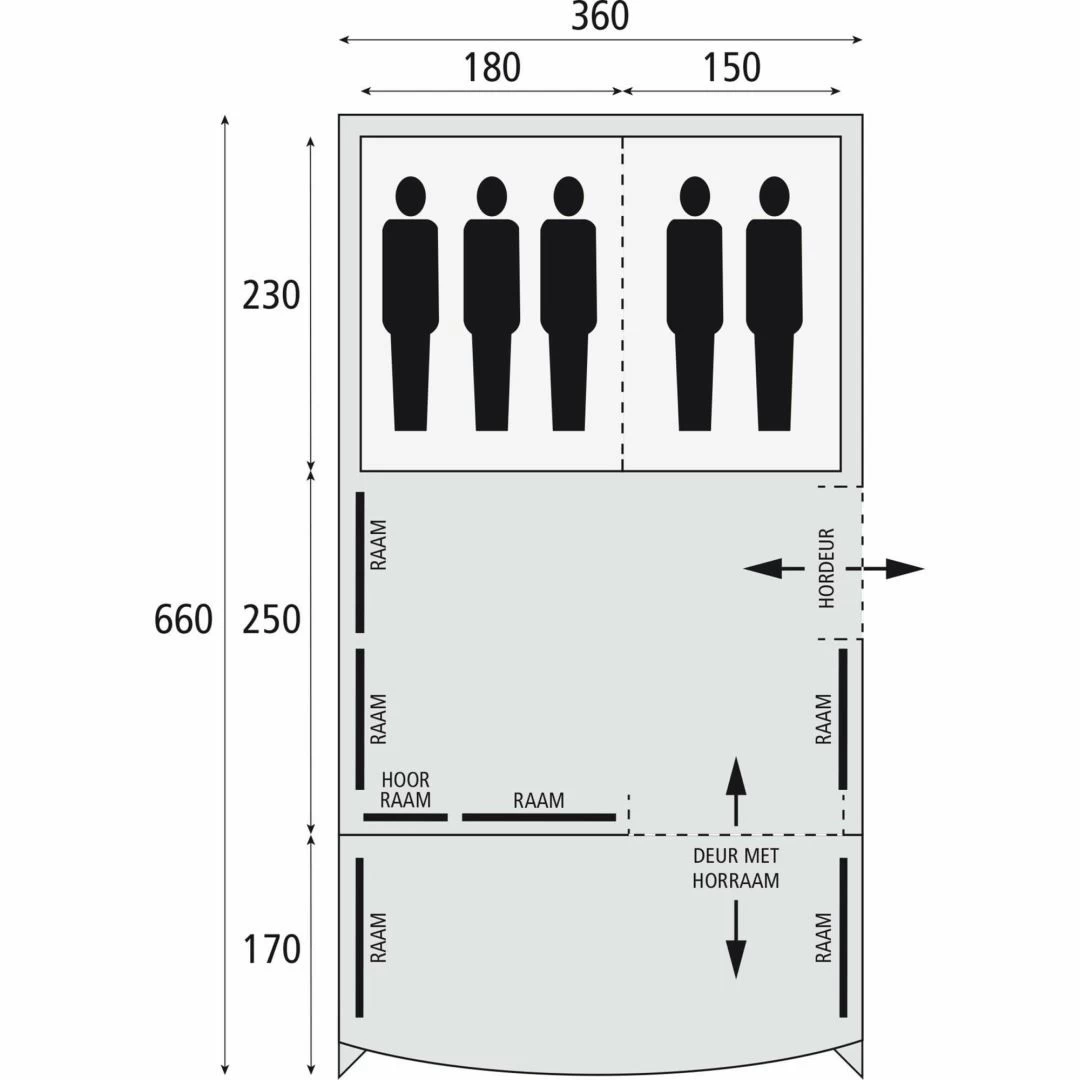 | Buitentent | 100% ademend technisch katoen, ca 210 gr/m2 |